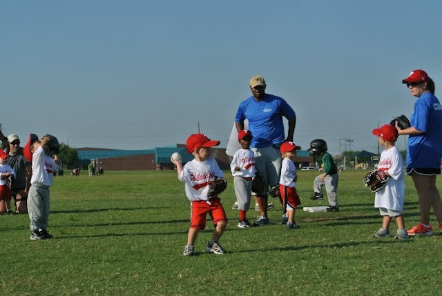 Seth made the commitment to coach Wyatt's first venture into t-ball. I'm pretty sure he earned himself some jewels in his crown on that one. I attended a few practices and it was a little like herding cats. He really enjoyed it though and so did Wyatt (until the evening makeup games which were one step down from molten lava hot. I think you Texans know what I'm sayin' here).